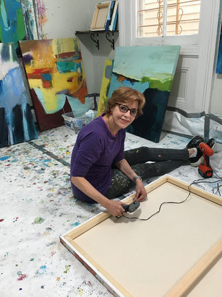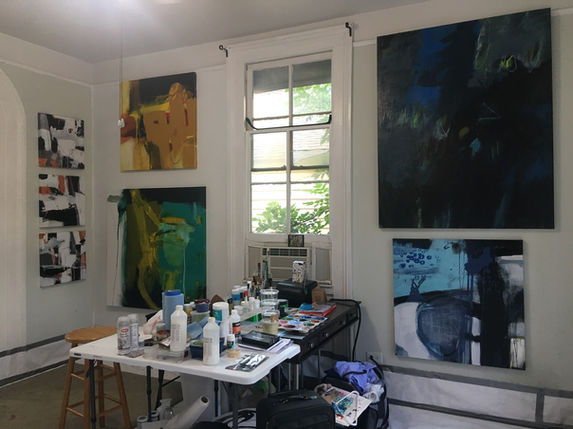 “I like to approach painting in much the same way that I approach working with a client in therapy, without judgement or agenda, letting the unconscious mind come to the fore. This way my artistic intuition and sensibility is allowed to flow freely into the work. Most of the time I paint completely non-objectively, enjoying the process of mark-making, color-blocking, texturizing and responding to those elements as I manipulate the surface of the canvas or paper.”